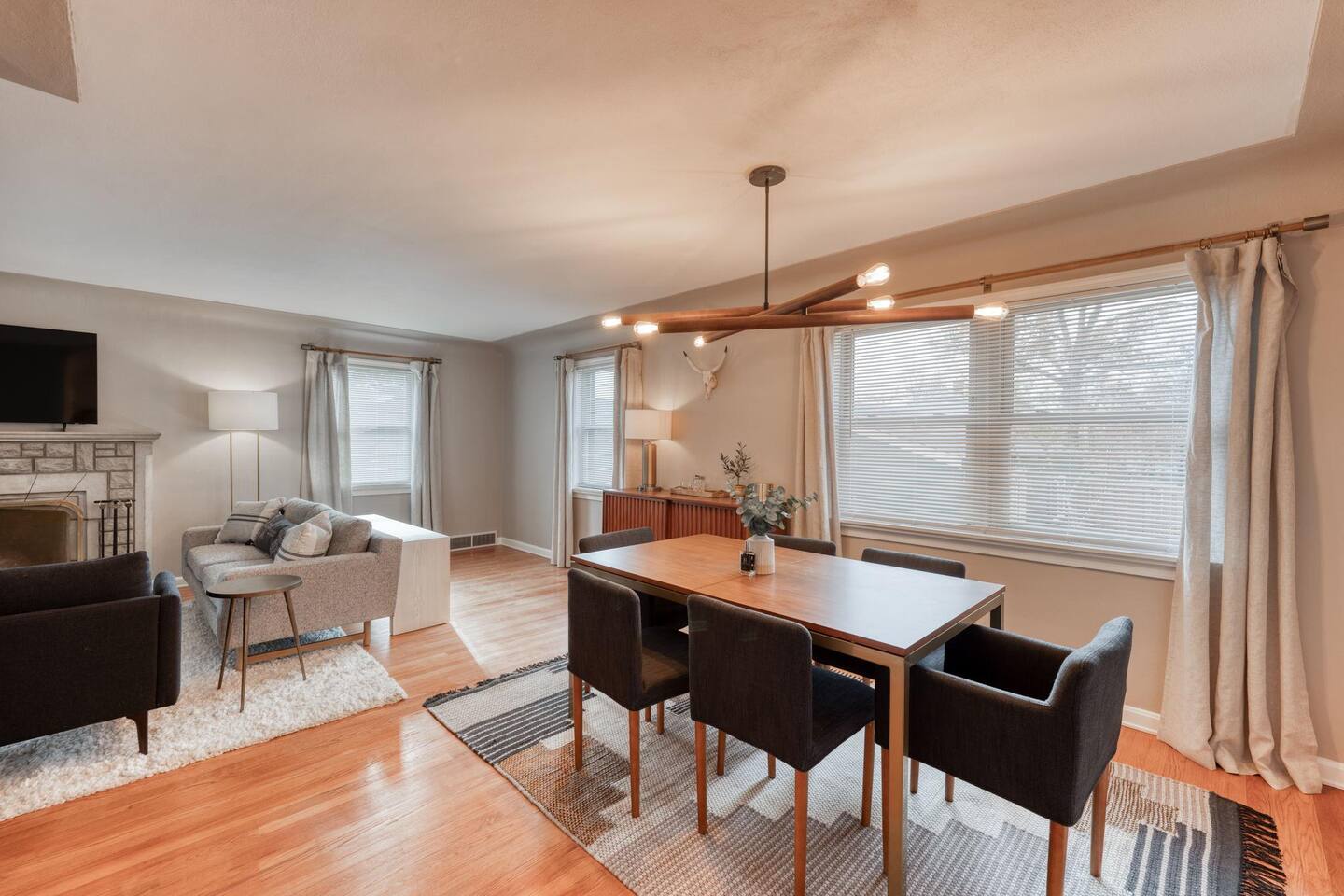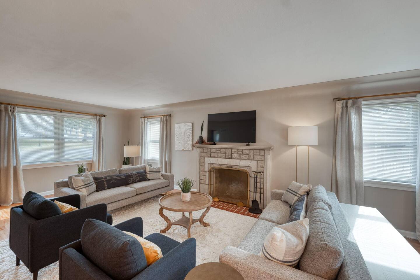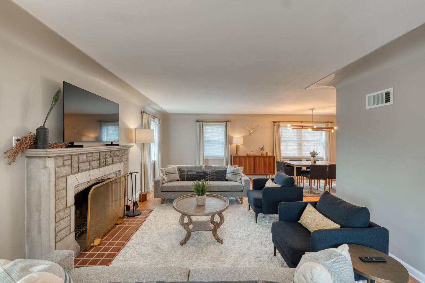 Modern amenities and updates make this midcentury home the perfect place to live and work while in Edwardsville. From the decorative original front door in the perfect downtown neighborhood to the completely renovated master bedroom ensuite, you'll be delighted by the charm and functionality of this home. The restored original hardwood is met with clean and updated paint & trim. Kitchen is newly renovated with beautiful Cambria countertops, a Nespresso coffee bar, and a cozy eat-in breakfast nook. The open concept dining room is a great gathering place with plenty of room to enjoy a special meal and chat. Working remotely? No problem! A dedicated office with printer and high-speed wifi is exactly what you need to work efficiently so you can enjoy more time downtown. In addition to the new master bath, two classically midcentury-style bathrooms are a throw back to days gone by. There is a fully fenced outdoor living space so feel free to enjoy your morning coffee or evening cocktail al fresco on the patio. Luxury mattresses and cotton hotel linens are in every room ensure you'll wake up feeling refreshed.
